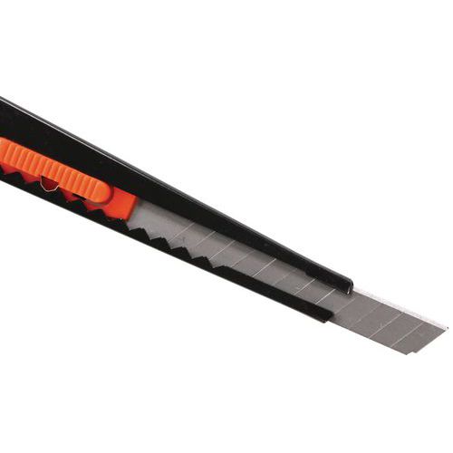 | Intitulé du produit | Cutter à lame sécable 9 mm, Lame rétractable: oui, Lame longueur: 140 mm, Lame largeur: 9 mm |