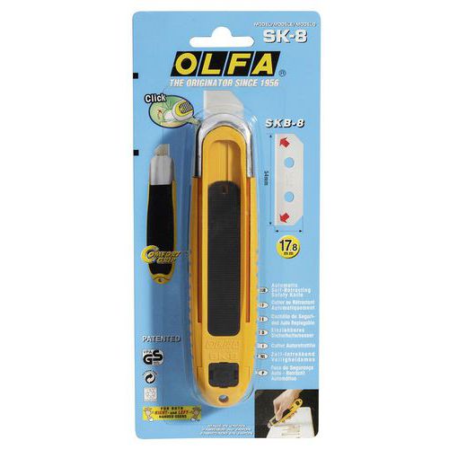| Intitulé du produit | Cutter de sécurité SK-8, Lame rétractable: oui, Coloris: Jaune, Usage alimentaire: non |