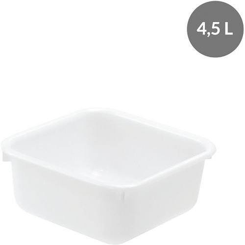 Cuvette carrée, Matériau: Polyéthylène basse densité, Coloris: Blanc, Forme: Carré, Capacité: 4.5 L