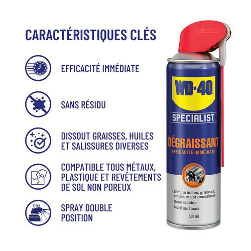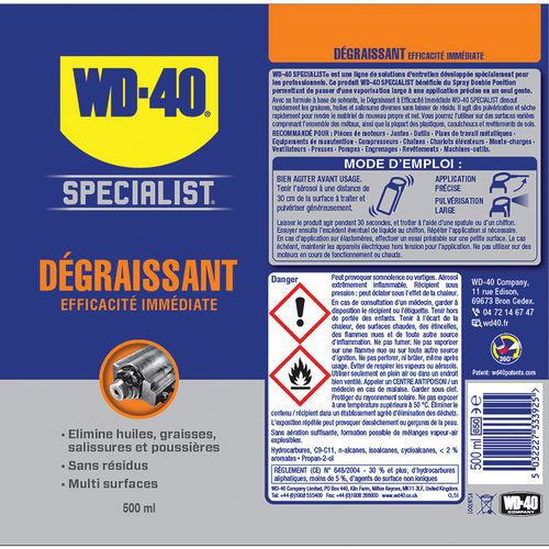 | Intitulé du produit | Dégraissant efficacité immédiate Specialist, Contenance: 500 mL, Aérosol brut/net: 650/500 |