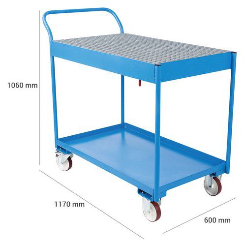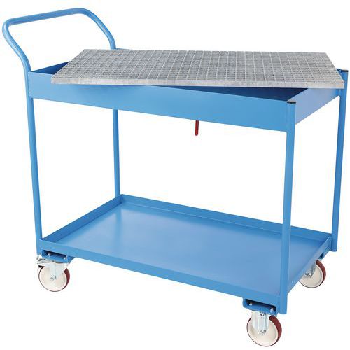 Desserte de nettoyage avec bac collecteur et grille amovible en partie supérieure.