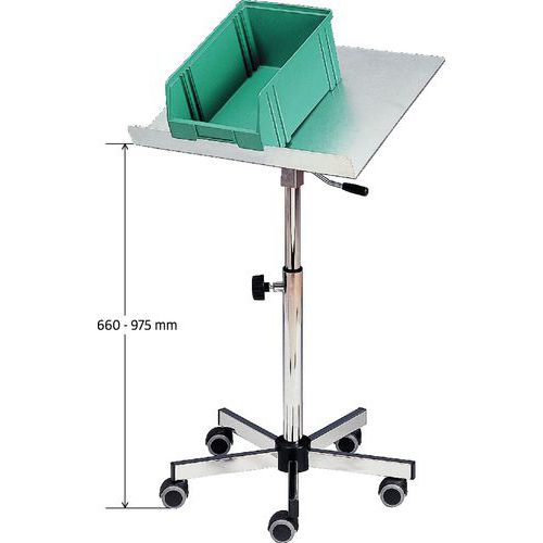 | Intitulé du produit | Desserte mobile à plateau inclinable, Charge maxi: 40 kg, Nb de tiroirs: 0, Type de plateau: Acier |