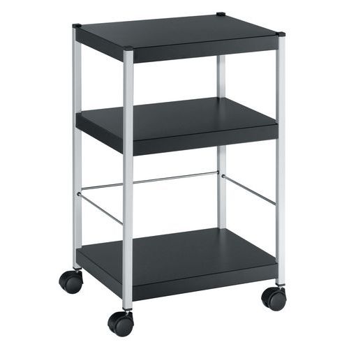 Desserte équipée de replis pour recevoir des dossiers suspendus. Galerie chromée pour le maintien des dossiers et des classeurs. 4 roulettes multidirectionnelles. Idéal pour le télétravail