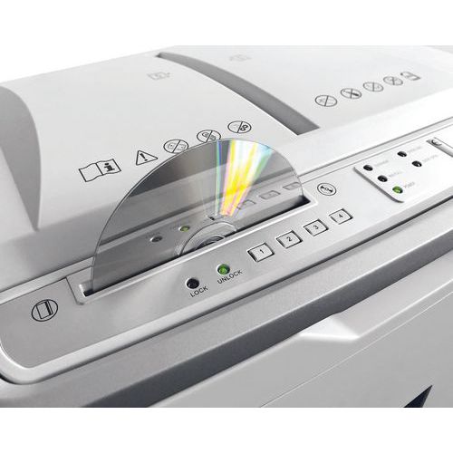 - Destructeur de documentséquipé d’un système d’alimentation automatique pour des liasses jusqu’à 300 feuilles.