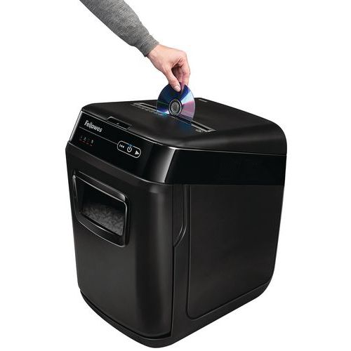 - Détruit aussi les agrafes, trombones, cartes de crédit, CD et DVD et catalogue publicitaire.