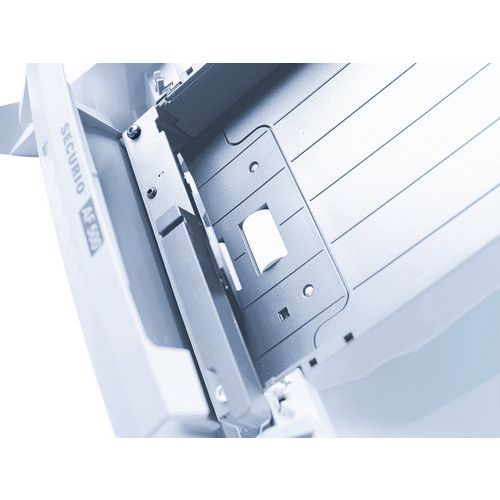 Verrouillage de la pile de papier en attente sur les destructeurs avec la fonction Lock-and-Go. Destructeur avec découpe simplifié grâce à la fonction Autofeed. Insertion du papier fiable grâce à la technologie Nanogrip. Nouveau type de coupe : coupe en particules. Moteur puissant pour un fonctionnement continu.