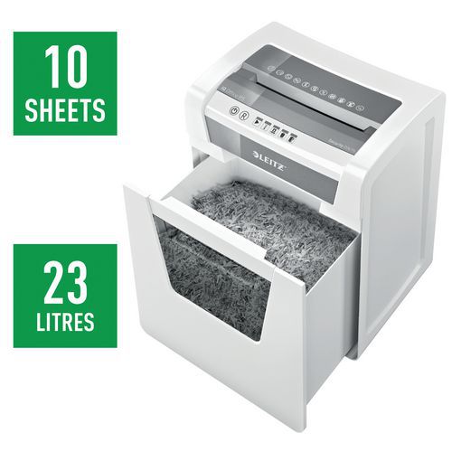 | Intitulé du produit | Destructeur manuel IQ Office P5 Leitz, Capacité de passage (feuilles A4/80 g): 10, Corbeille capacité: 25 L |