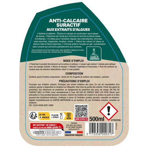 | Intitulé du produit | Détartrant aux extraits d'algues 500 ml, Produit désinfectant: non, Pour type de sol: Multisurface |