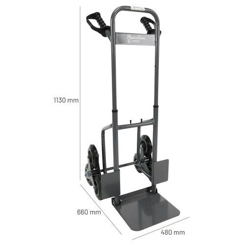 | Intitulé du produit | Diable 3 roues avec bavette pliante- Force 150 kg, Force: 150 kg, Hauteur hors tout: 1130 mm |