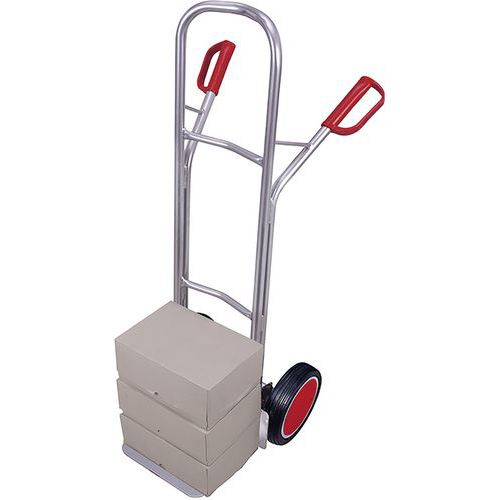 Diable en aluminium Création: construction mécano-soudée en tube d'aluminium 2 poignées en plastique avec 2 garde-boue Fabriqué en UE Force (kg) : 200 kg