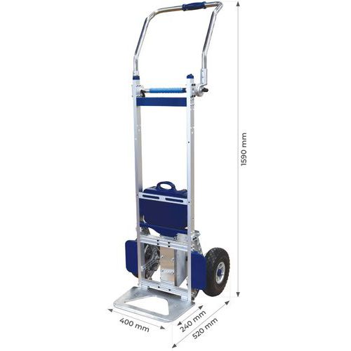 | Intitulé du produit | Diable monte-escalier électrique 200 kg, Force: 200 kg, Roue Ø: 260 mm, Bavette fixe profondeur: 240 mm |