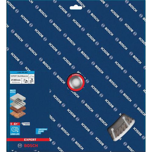 Disque diamant multi-materiaux Expert - Bosch Dure jusqu'à 4 fois plus longtemps qu'un disque diamanté multi-matériaux standard Arête de coupe extrêmement résistante grâce à Bosch Diamond Technology Idéal pour couper les matériaux de construction, tels que les briques et le béton , effectue des coupes droites dans les dalles de pavage , permet de couper des briques à la taille voulue pour la maçonnerie , coupe les matériaux courants utilisés dans la construction d'habitations. Idéal pour les professionnels de la construction : durable et très polyvalent.