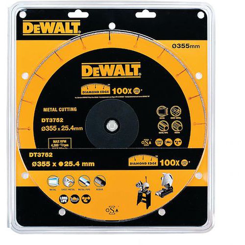 | Intitulé du produit | Disque diamant pour tronçonneuse DW875/871, Alésage Ø: 25.4 mm, Ø: 355 mm |