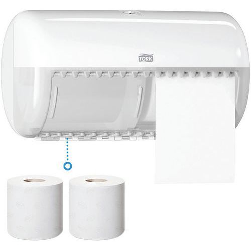 Pour tous les rouleaux de papier toilette classiques. Accueille deux rouleaux, de sorte qu'il y ait toujours un rouleau de réserve. Convient également pour les rouleaux « Advanced » (extra longs).