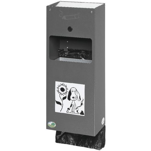 Distributeur hygiène canine et cendrier, Capacité: 250 L, Matériau: Métal, Coloris: Gris, Type: Mural