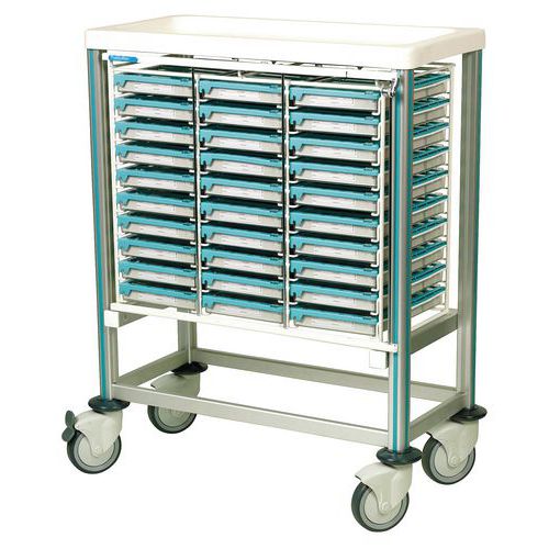 - Chariot 12 niveaux équipé avec tablette rabattable et de 3 rails universels.