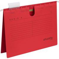 Dossiers suspendus résistants, durables et universels avec reliure Fastener, pour tout type d’utilisation. Pour format A4, avec zone d’identification imprimée en noir. Compatibles avec les porte-étiquettes transparents Vario 60 mm. Crochets de suspension métalliques, avec extrémités en revêtement pulvérisé blanc. Reliure en métal de 80 mm avec compresseur en métal. En papier cartonné recyclé 230 g/m². Principalement utilisé en Allemagne.