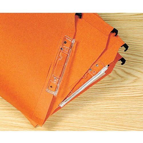 | Intitulé du produit | Dossier suspendu, Forme du fond: V, Coloris: Orange, Matériau: Carton, Emballage recyclable: Oui - 100 % |