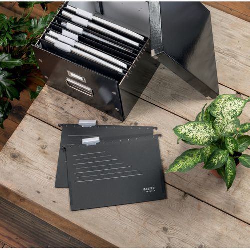 | Intitulé du produit | Dossiers suspendus, Forme du fond: V, Coloris: Noir, Matériau: Polystyrène, Emballage recyclable: Oui - 100 % |
