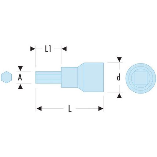 Douilles 1/4 6 pans isolées 1000 Volts série VSE, Nb de pans: 6, Réf. Fabricant: RT.5AVSE, Tête Ø: 2.2 cm