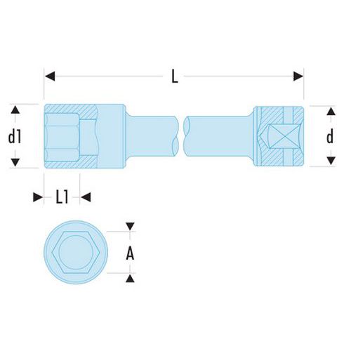Douilles impact 1 extra-longues 6 pans métriques