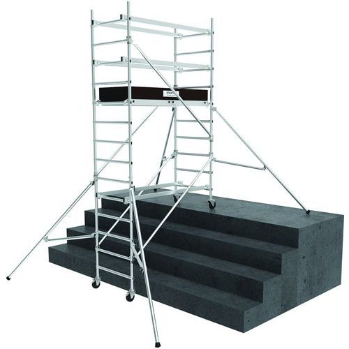- Échafaudage roulant aluminium STARTEO avec décalage de niveau.
