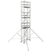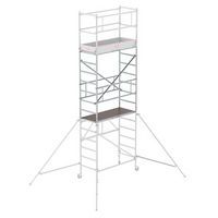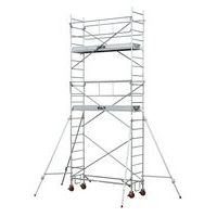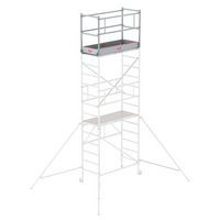 - Échafaudage roulant aluminium AL205 (longueur 205 cm) à base standard et garde-corps monobloc.
