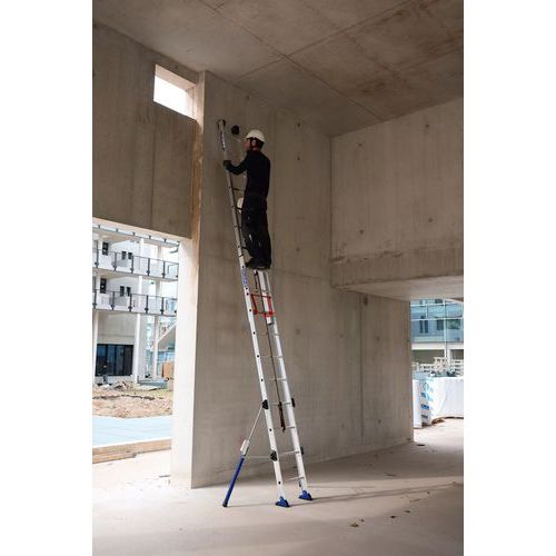 - Échelle coulissante 2 plans à corde avec stabilisateurs rabattables à réglage millimétrique.