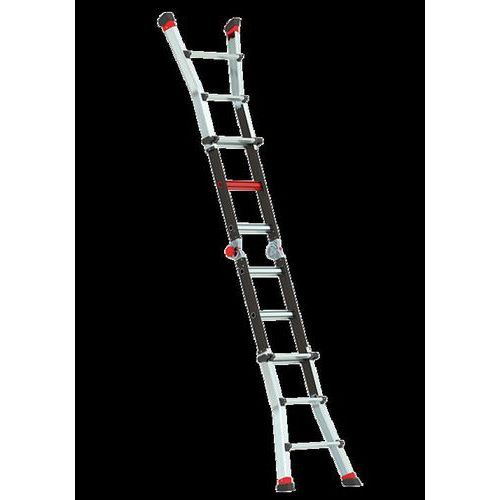 - L'échelle est télescopique, ce qui permet de l'utiliser facilement sur une surface irrégulière.