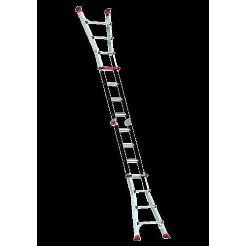 - L'échelle est télescopique, ce qui permet de l'utiliser facilement sur une surface irrégulière.