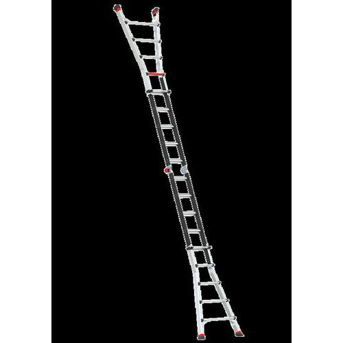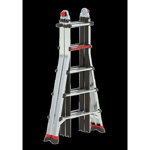 - L'échelle est télescopique, ce qui permet de l'utiliser facilement sur une surface irrégulière.