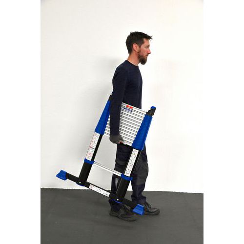 - Échelle télescopique ergonomique, compacte, déverrouillable en 1 seule main.