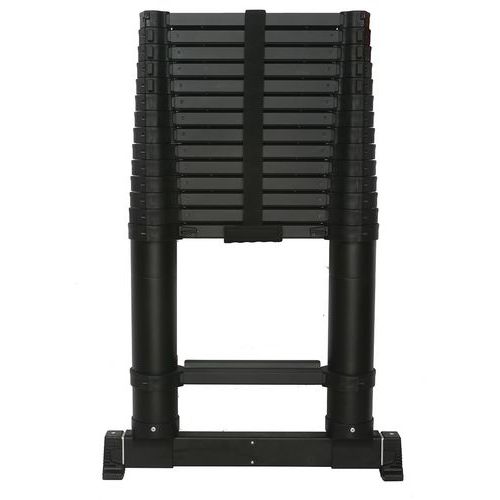 Échelle télescopique aluminium ultra-compacte, légère. Hauteur ajustable pour répondre aux contraintes chantier. Témoin vert de mise en place, sangles de maintien refermées. Embouts d'appui pour une parfaite stabilité et butées de marche. Repliage par 2 boutons poussoir, poignées confort pour transport. Charge maxi (kg) : 150 kg
