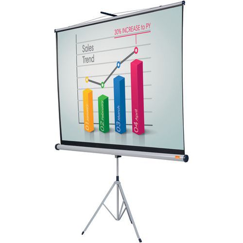 Disponibles en plusieurs formats allant jusqu´à 2 m de large, les écrans trépieds Nobo sont dotés d´une surface blanche, mate et lumineuse, et d´une bordure noire pour garantir une image nette et détaillée. À utiliser avec un vidéoprojecteur ou un rétroprojecteur, ces écrans entièrement portables sont dotés d´une potence d´inclinaison et peuvent se rétracter facilement dans leur carter de protection. 1 500 x 1 138 mm.