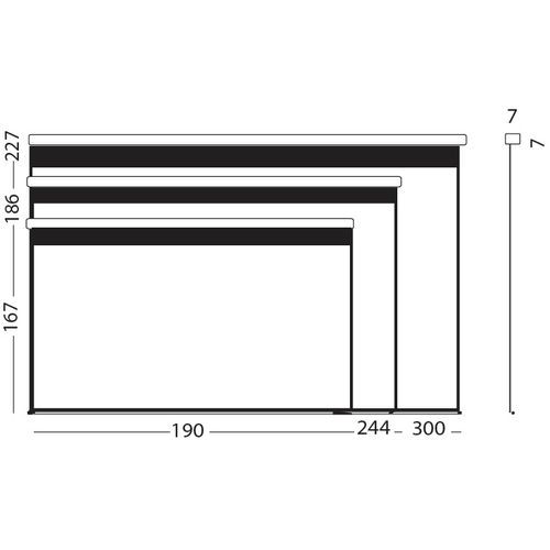 Ecran de projection électrique silencieux. Couleur blanc mat. Bords noirs (3 ou 5 cm) sur tous les côtés. Support mural avec moteur intégré. Equipé de point de fixation pour mur et plafond.