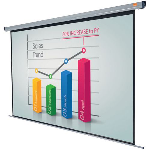 Créez des présentations professionnelles avec les écrans de projection muraux électriques Nobo. Il suffit de faire descendre l´écran à l´aide de la télécommande et le tour est joué. Pas besoin d´installation électrique complexe – branchez simplement la prise. La surface blanche, mate et lumineuse, garantit une image d´une grande netteté visible par tout l´auditoire. 1 440 x 1 080 mm.