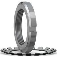 Les écrous de serrage sont utilisés pour bloquer des roulements sur un arbre Ils peuvent également être utilisés pour monter les roulements à alésage conique sur des portées d'arbre coniques et sur des manchons de serrage et pour désolidariser les roulements montés sur des manchons de démontage Les écrous de serrage sont également souvent utilisés pour immobiliser des pignons, des poulies et d'autres composants de machine.
