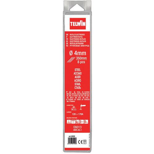 | Intitulé du produit | Électrodes rutiles pour le soudage d'acier d'épaisseur modéré, 4mm, Application: Soudage d'acier, Ø: 0.4 cm |