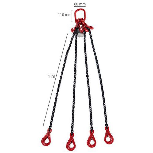 Élingue chaîne 4 brins à crochet automatique - Force 2360 kg - Manutan Expert