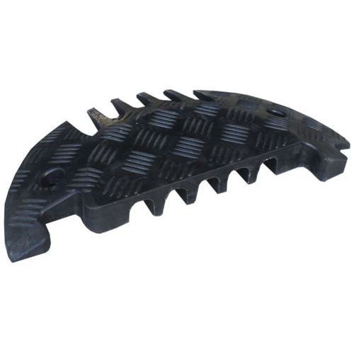 Embout de passe-câbles permettant de protéger les câbles et tuyaux lors d'une utilisation temporaire. Fabriqué en caoutchouc. Résiste aux passages de véhicules jusqu'à 15T par essieu. S'imbrique facilement grâce à ses queues d'arondes inversées puis se fixe avec 2 points de fixation.