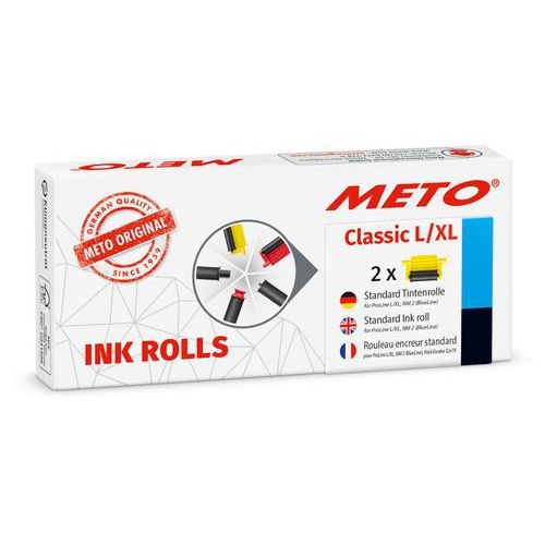 - Blister contenant 2 rouleaux d'encre noirs pour un remplacement facile et sans salissures.