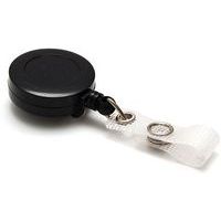 Enrouleur attache badge plastique, Coloris: Noir, Longueur: 30 mm, Lacet longueur: 72 cm, Matériau: PVC