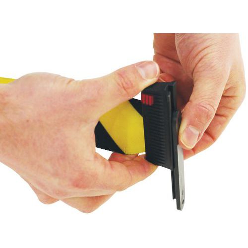 Support à sangle étirable à fixer directement sur un mur grâce à l'attache murale fournie. Conçu pour protéger vos accès aux personnes non autorisées ou pour délimiter des files d'attente ou encore des zones de circulation en entrepôt. Cassette rotative à 180 °.