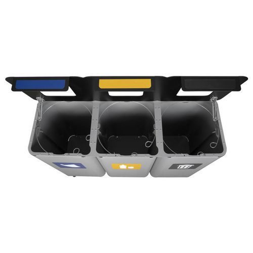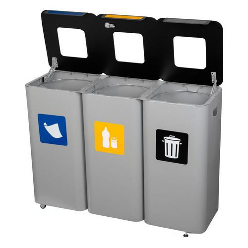 Ensemble de bacs de recyclage, en métal et modulable, Capacité: 210 L, Ouverture: À fente, Matériau: Métal