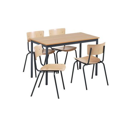 | Intitulé du produit | Ensemble de cantine hêtre, Plateau matériau: Mélaminé, Piétement coloris: Noir, Plateau coloris: Hêtre |