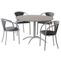 - Ensemble de 4 chaises avec accoudoirs et une structure argenté/chromé et d'une table avec un pied central en acier.
