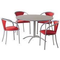 - Ensemble de 4 chaises avec accoudoirs et une structure argenté/chromé et d'une table avec un pied central en acier.