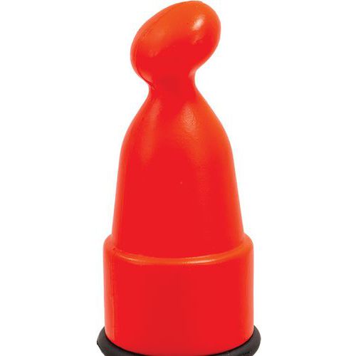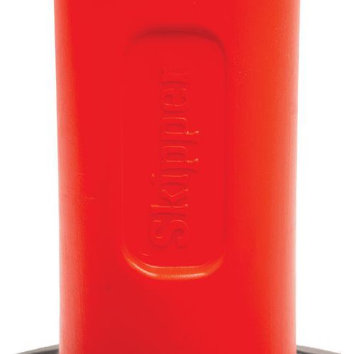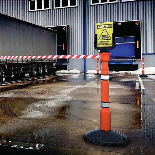 Poteau orange robuste de 1 m de haut avec bandes réfléchissantes et base pouvant être remplie d'eau ou de sable jusqu'à 10 kg pour assurer une meilleure stabilité.