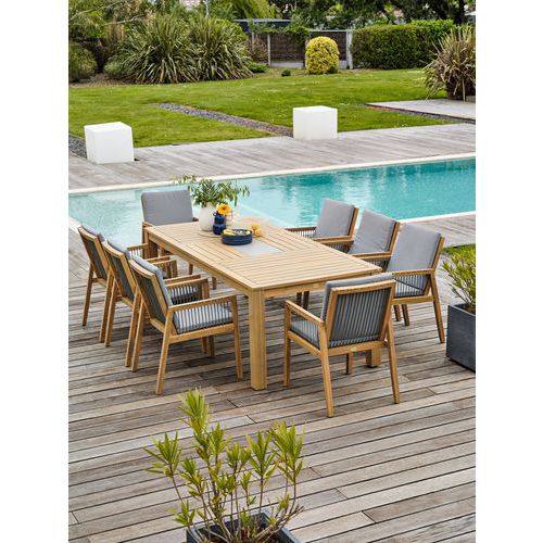 | Intitulé du produit | Ensemble repas de jardin en bois d'acacia Sullana, Coloris: Acacia, Livré monté: non |
