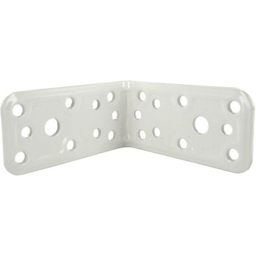 Equerre d'angle acier 90°. Assemblage en applique à visser. Epaisseur 1.2 mm. Fabriqué en acier zingué.